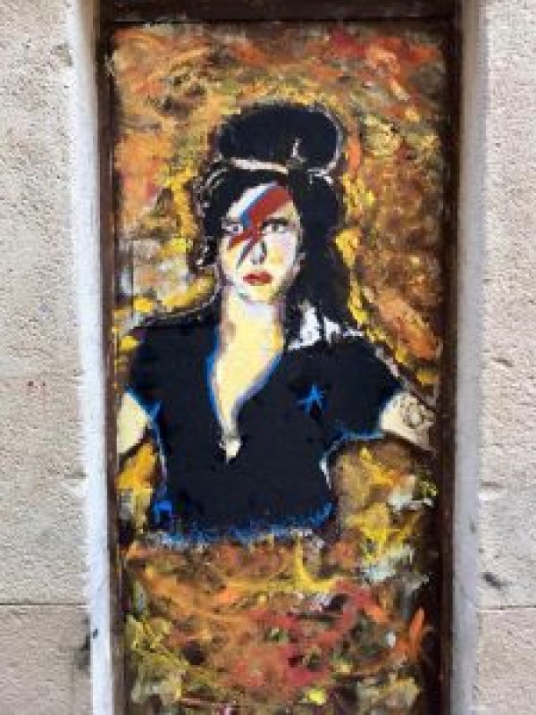 Here's another portrait of the singer, Amy Winehouse which appeared on Carrer Mozart in Vila de Gràcia during the Festes de Gràcia, 2017.
